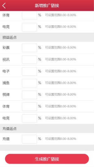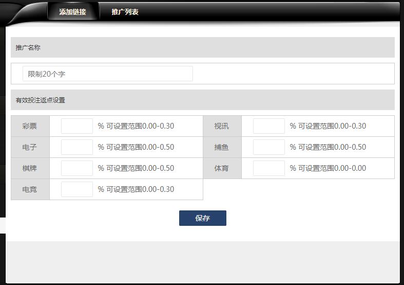 填写对应的返点值后点击保存即可生成推广链接,最多可生成 10 条链接.