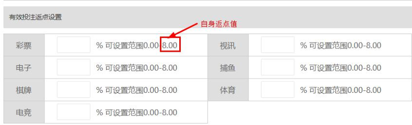 设置类型分为有效投注额、损益、充值,上级若是没有开启某类型的返点,则该页面不